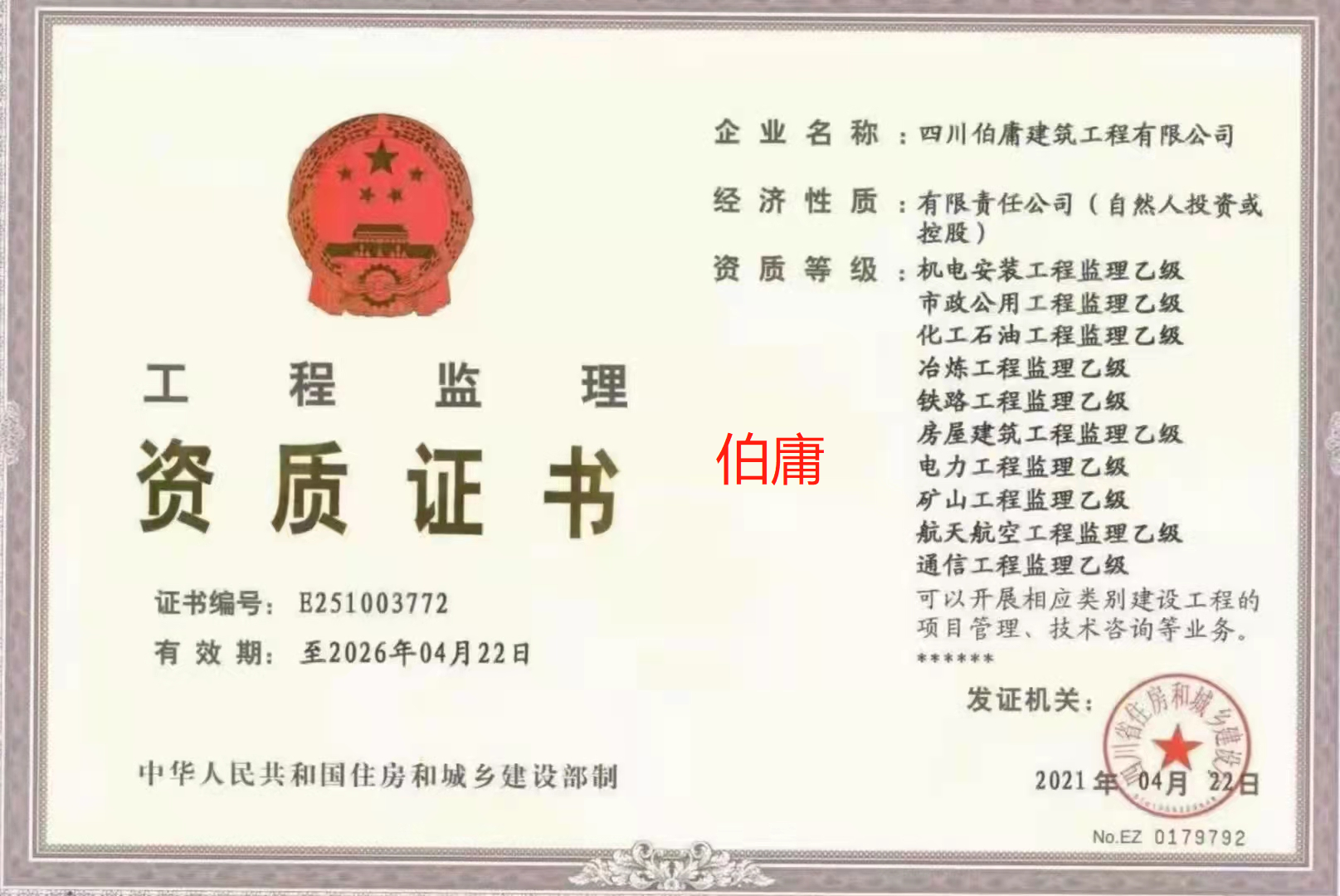 企業(yè)名稱:四川伯庸建筑工程有限公司